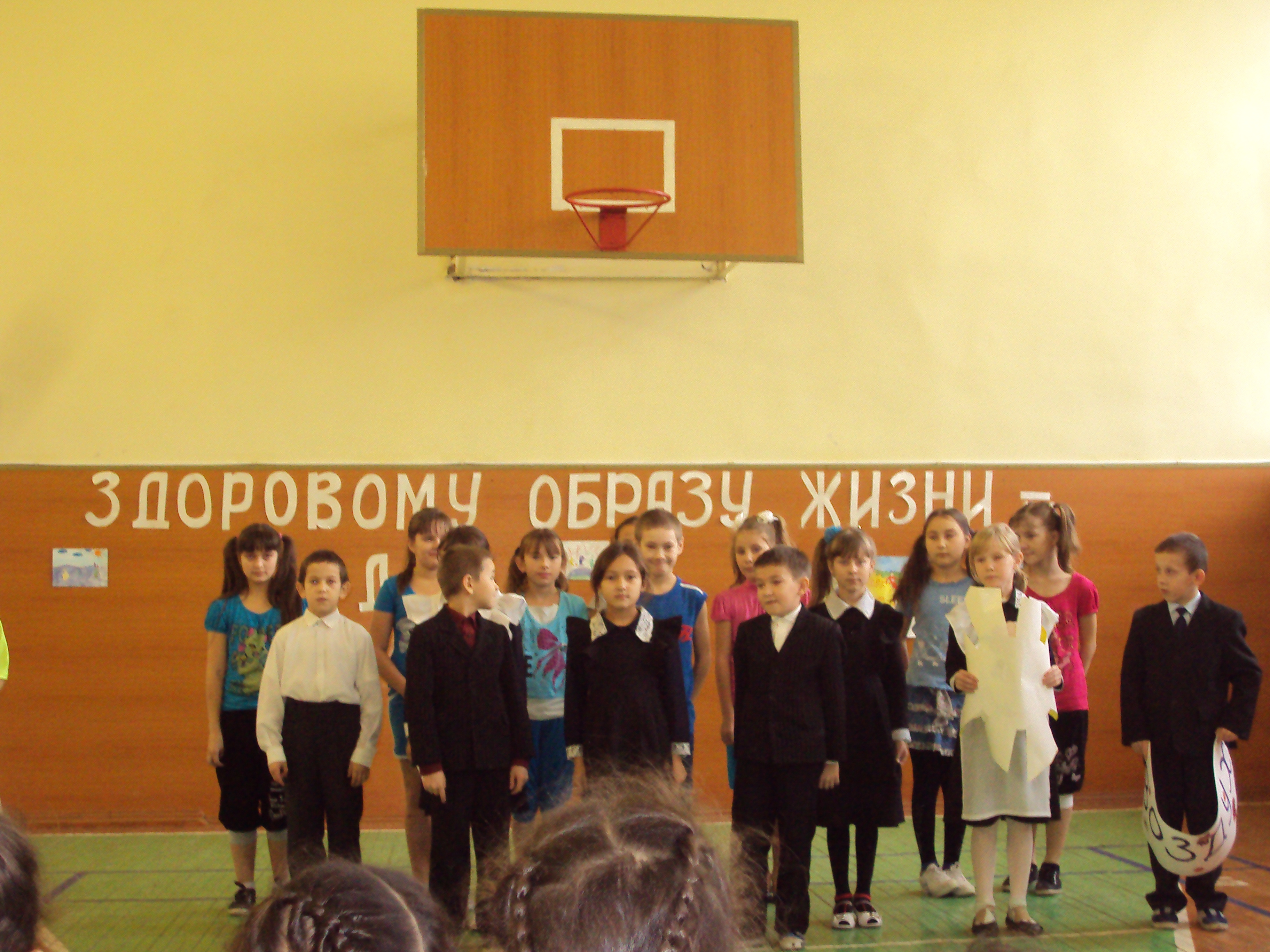 На общешкольной линейке представили нашу агитбригаду. Рассказали о важности занятий спортом, призывали жить счастливой жизнью, сохранить здоровье,чтобы вредные привычки были наш
